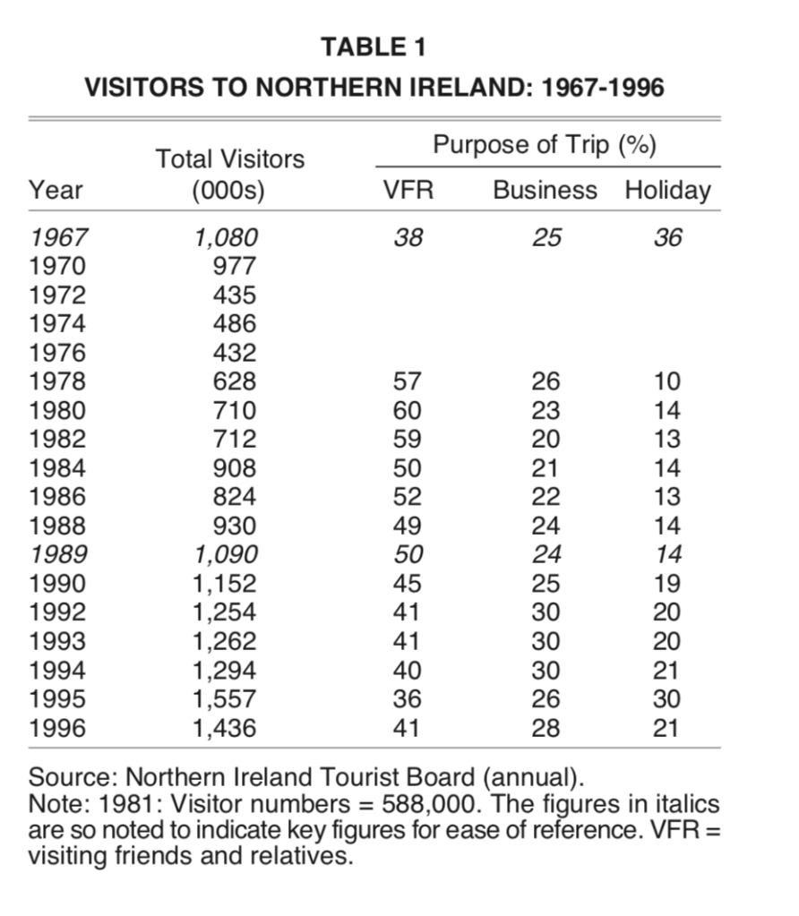 Below are some stats taken from a study that show the swift decline in tourism during the Troubles: