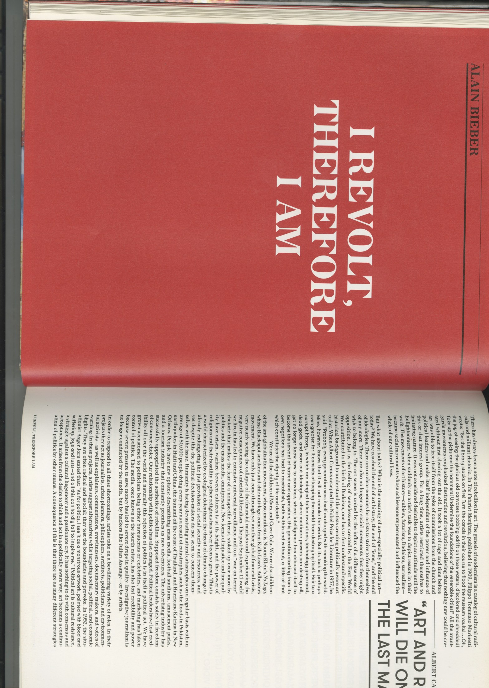 - “They produce works that are specifically designed to help bring about change in prevailing social, political, or cultural circumstances. Since these artists aim to tackle socio-political short-comings, they want their art and campaigns to show how art an influence reality.” This quote inspired me to change my essay question to, “How can art be used to alter reality for the political good?” and although it has changed again as I realised those who support what I consider bad (such as pro-lifers) may consider what they are doing as “political good.” However it still raised an interesting point that art can be so powerful as to alter those who view its’ reality.
